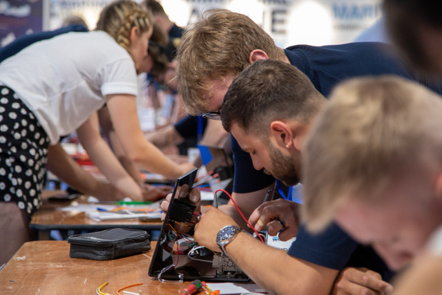 The marine business Level 3 apprentice teams from Sunseeker, the RNLI, and Cobra Ribs competed in real time to design the controls for a motor, including necessary calculations, and wire a system up using the test rigs provided.